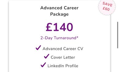 We also offer packages that include a CV, cover letter, and LinkedIn profile—all professionally tailored to your goals.